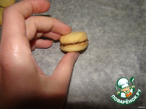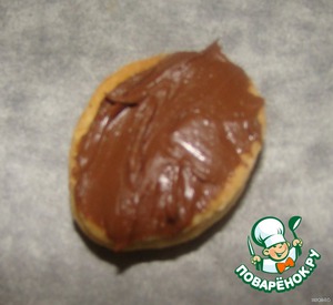 • Когда печенье остыло, намажем плоскую часть шоколадной пастой (можно сделать масляный крем)