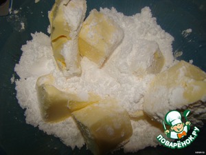 Размягченное сливочное масло смешаем с сахарной пудрой до однородной массы