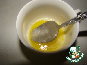 • Чайную ложку окунаем сначала в растопленное сливочное масло, затем заполняем ее тестом.