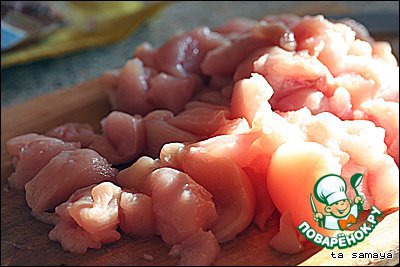 Нарезаем курицу на маленькие кусочки