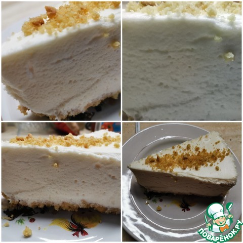 [+5]Делала без коржа вовсе ,хотелось чистого вкуса.Думаю если перед едой выставить из холодильника минут на 30 ,станет еще более нежный и тающий.