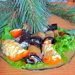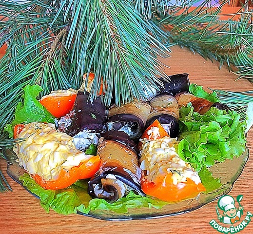 Рецепт «Рулетики из баклажанов c сыром и оливками»: