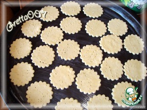 Вырезать печенья формочкой в виде цветка диаметром около 3 см.