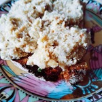 А я делаю с отварной картошкой вместо хлеба и без яблока, но с отварными яйцами и поджаренным луком, а потом все весте смешивается со сливочным маслом. Тоже передается из поколения в поколение.