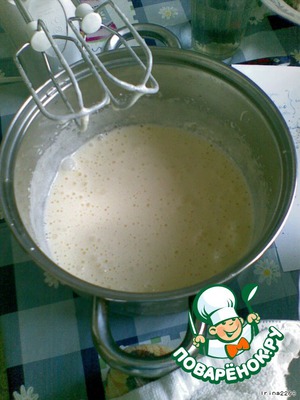 Последним добавить кипяток, непрерывно взбивая (воды я добавила меньше 3/4 стакана, боялась, тесто слишком жидкое... но зря волновалась) -