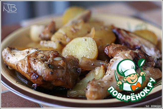 Куриные крылышки с медовой корочкой, запеченные с картофелем и ананасами. Искала я тут как-то рецепт, что можно интересного изобразить с куриными крылышками. И, как-то вроде, и рецепты есть, но вот за ингрeдиентами пришлось бы бежать в магаз :) В общем, закрыла я все рецепты и стала готовить так, как на душу легло. Ну, во первых, если крылышки, значит в маринаде. А если в маринаде, то обязательно с медовой корочкой )))