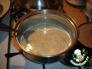 Растопить слив. масло, добавить измельченный миндаль и влить молоко.Довести до кипения.
