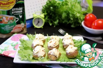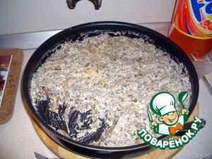 Когда с грибов уйдет сок - залить сливками, протушить и добавить потертый на крупной терке сыр и перемешиваем. В этот момент для усиления грибного вкуса (если вы не добавляли других грибов, кроме шампиньонов) можно добавить приправу "Соус из грибов" или кубик грибного соуса.