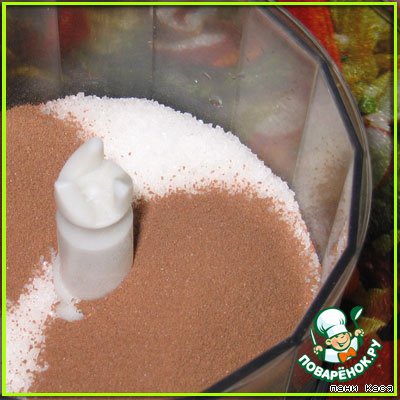 Сахар измельчаем с Несквиком (измельчаю, потому что он так лучше взбивается, а с Несквиком - потому что дочка попросила )