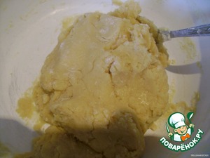 Готовим тесто: смешиваем 1 яйцо, желтки, 1 ст. сахара, растопленный маргарин, муку и соду до однородного теста. Оно получается мягким и не должно прилипать к рукам (муку регулируйте) -