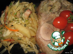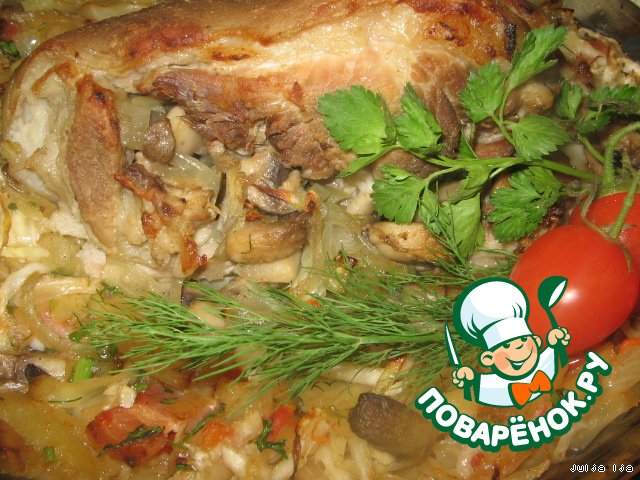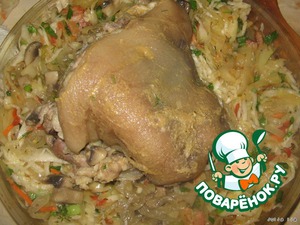 Рецепт «Рулька с тушeной капустой и грибами»: