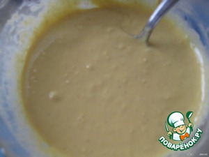 Яйца взбить, добавить соль, перец, горчицу, молоко, масло растительное, сахар, взбить все вместе.