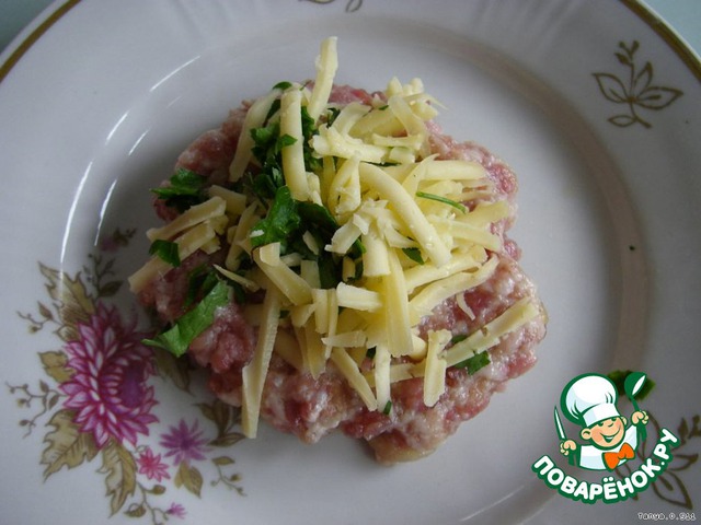 Из фарша сделать лепешку, положить на нее сырную начинку.
