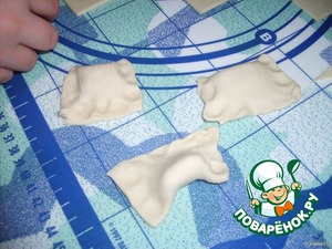 Закрыть шоколад тестом, края прижать. Получатся вот такие ушки.