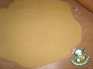 Тесто раскатать в пласт толщиной около 0,5 см.