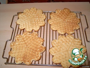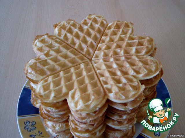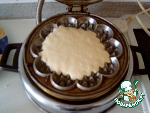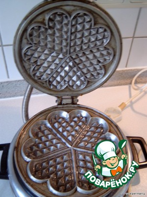 Чтобы получить одну целую вафлю накладываем в вафельницу 2 ст. ложки теста с горкой.