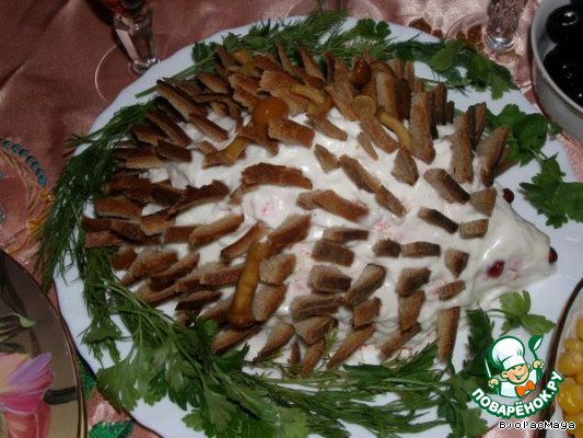 Мне понравилась фотография салата "Ежик", но так как не смогла найти рецепта на день рождение я сделала своего ежика.