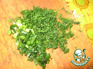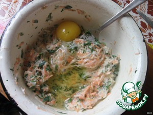Смешиваем картофель, морковь, яйцо, кефир, специи, зелень.