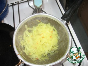 Капусту откидываем на дуршлаг и даем ей стечь и остыть.