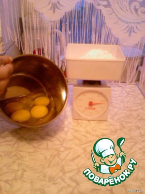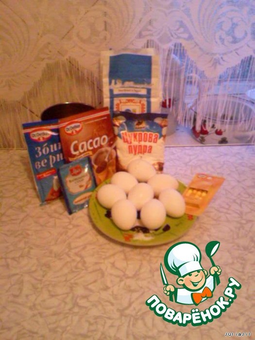 Вот те ингредиенты, которые нам понадобятся для приготовления двух бисквитов и крема Шантийи, которым мы пропитаем коржи.