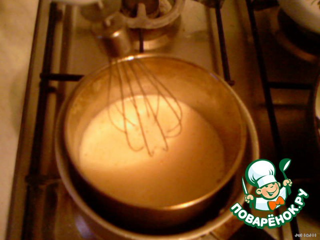 Помещаем посудину в водяную баню и взбиваем до светлой густой массы.