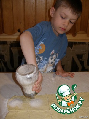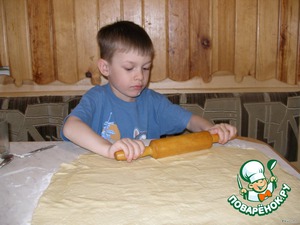 Раскатываем тесто в пласт толщиной 5 мм.