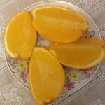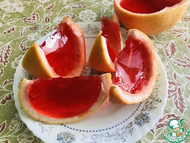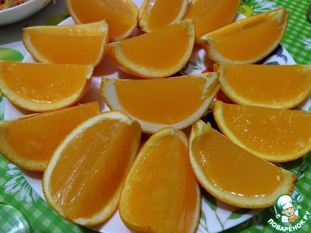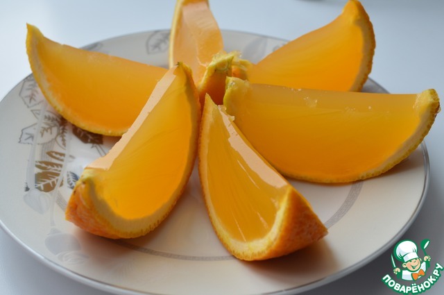 [+4]Готовила без добавления на сахара, из 1 апельсина, 1 мандарина и 10 г желатина; воды взяла 100 мл. Самое сложное - очистить цитрусовые изнутри, не повредив их