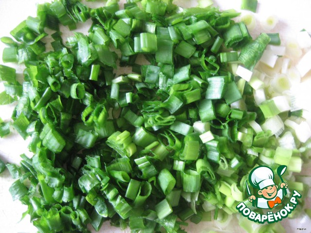 Далее зеленый лук, желательно чтобы было по больше зелени.