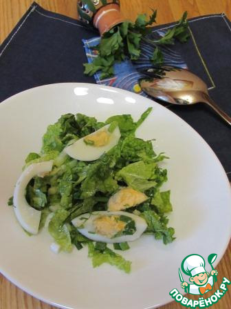 Отварные яйца нарезать по крупнее. Заправляем маслом или майонезом, кому как нравится, солим, перчим, и все смешиваем. Получается вкусный салат! Приятного аппетита!