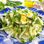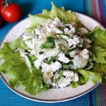 Вчера делала этот салат с добавлением вареной курицы и картофеля.