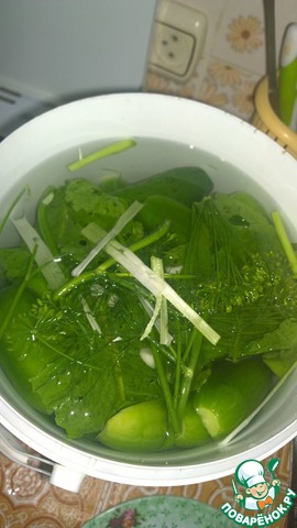 Сверху огурцы закрываем листьями хрена.