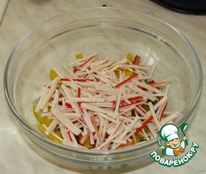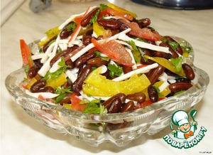 Фасоль отварить до готовности (предварительно замочив часа на 3), охладить и добавить в салат.