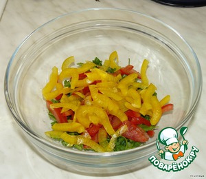 Перец и помидоры порезать (предварительно удалив из помидор мякоть).