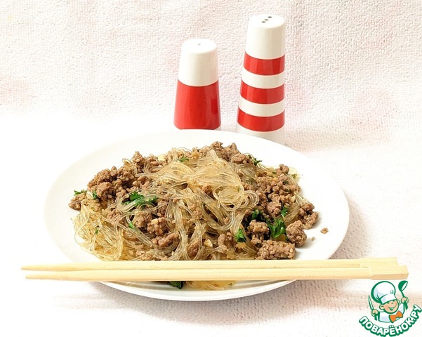 Рецепт «Фунчоза с фаршем и кунжутом»: