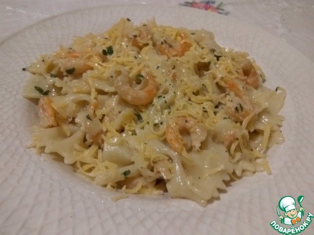 Положить тальятелле в соус с креветками, посыпать пармезаном и петрушкой.