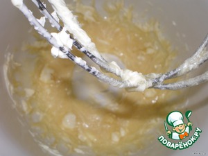 В отдельной посуде взбиваем белки в стойкую пену и вводим по чуть-чуть вместе с мукой к масляной массе.
