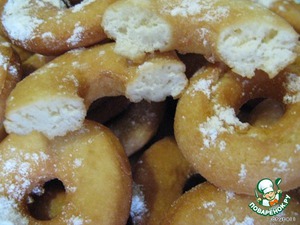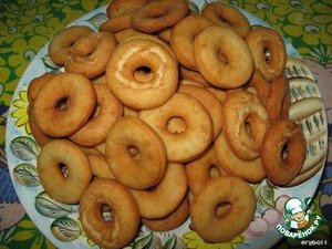 Жарим наши сушки - колечки во фритюре с двух сторон по 2 минуты, до светло - золотистого цвета. При жарке они раздуваются и масла много в себя не впитывают - получаются не жирными!