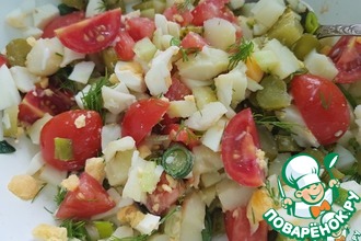 • Смешиваем майонез со сметаной - 50 на 50. И этой смесью заправляем салат и добавляем немного душистого перца. Вот и все. Вкус замечательный!!!