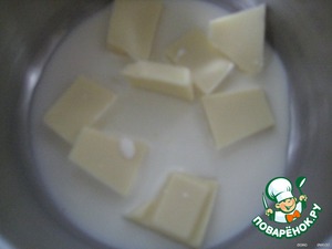 В маленькой кастрюльке растопить белый шоколад со сливками до однородного состояния.