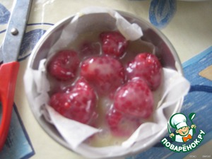 маленькие формочки выстелить пищевой бумагой и в каждую разложить малину, заполняя на 1/3 части. -