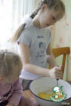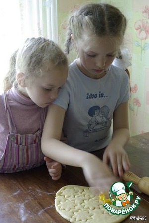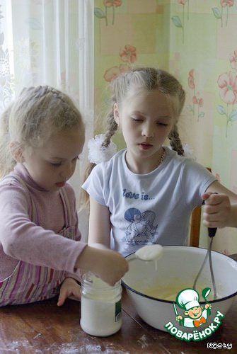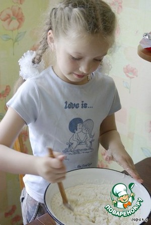 А теперь старшая демонстративно добавила муку, но тесто замешивала конечно сама мама.