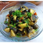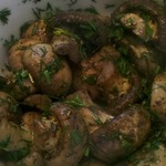 Для тех, кто любит сырые шампиньоны так, как люблю их я... Очень оригинальная закуска (тоже испанская кухня). Есть одно НО: шампиньоны подаются с пылу - с жару, надо их сразу есть, иначе они дают сок и весь эффект этой закуски пропадает. "Изюминка" в том, что снаружи грибочки острые, пикантные, а внутри практически сырые, упругие - с присущим шампиньонам ореховым вкусом.