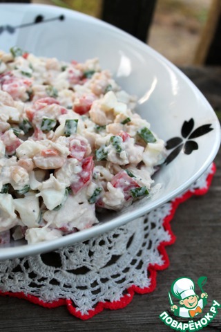 Нежный салатик с фасолью, его рецепт сегодня мне рассказала девушка с которой я работаю. Когда муж увидел что я начала готовить сказал что раз с фасолью есть не будет, в итоге большую часть салатика съел он!!!
