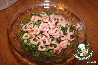 Нежный, сочный салат с креветками. Очень вкусно и красиво.