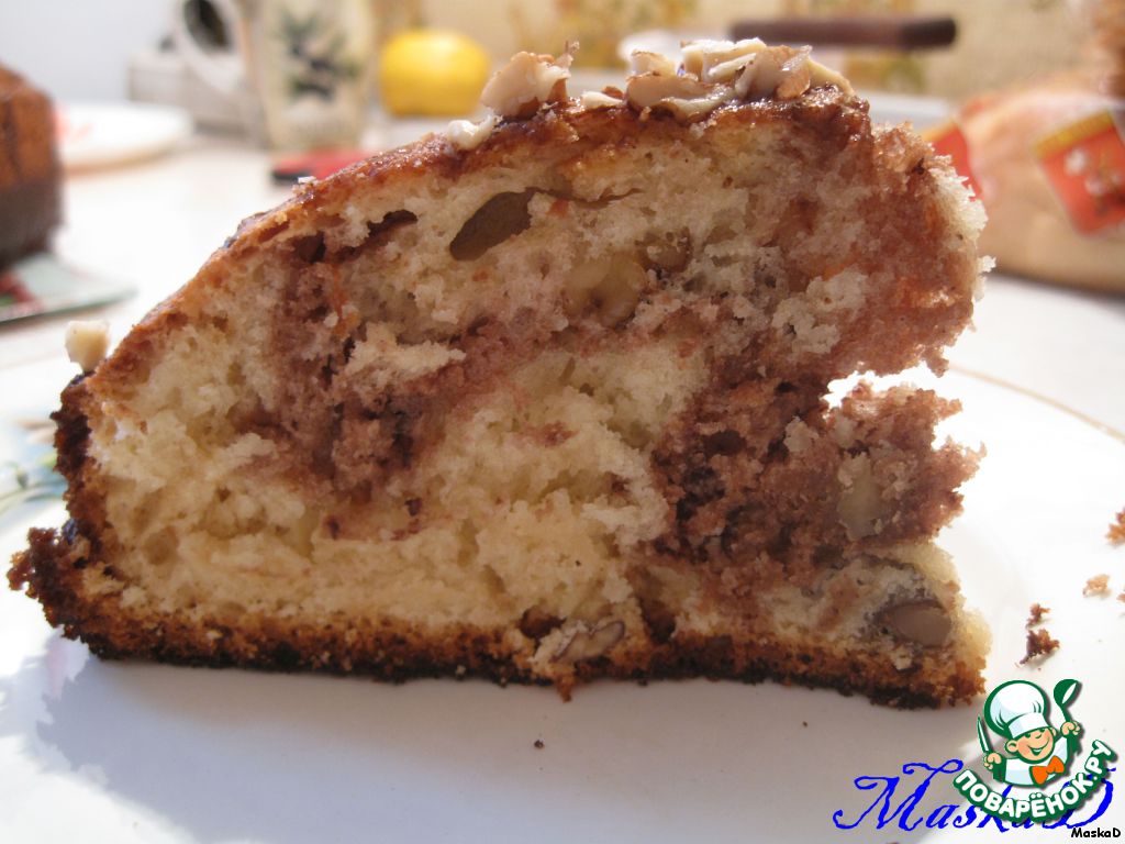 Противень смазываем сливочным маслом и в порядке очереди выливаем тесто - ложка темного, ложка белого теста и так до конца.
