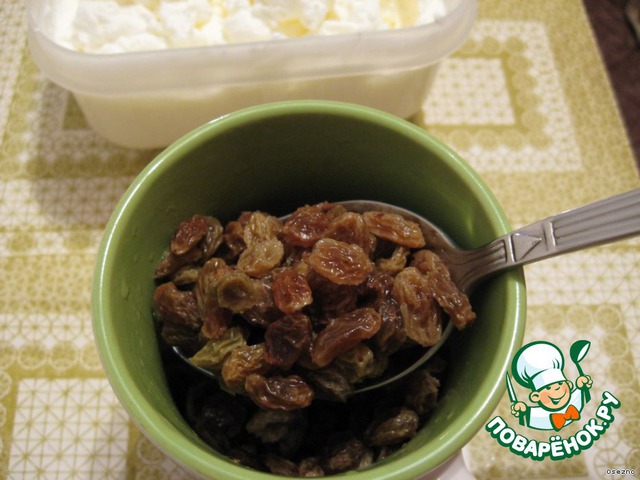 Изюм залейте кипятком. Через час слейте воду, добавьте в изюм ром, накройте крышкой и оставьте на 30 минут.