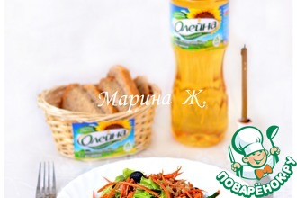 На даче уже появился свежий лучок, я его в простом виде не очень "уважаю", а все таки витамины, вот и сделала салат:) Фотография неважная вышла, на мобильный телефон, прошу прощения:)