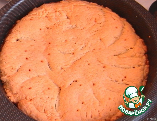 После выпечка пирогу дать остыть около получасе не переворачивая, иначе он разломается и нечего не получится. -