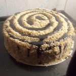 Коржи выпекаются примерно по 3 мин., порежьте корж под размер тарелочки, пока он тeплый. Остывшие коржи перемазать кремом, посыпать измельченным арахисом (это по моему вкусу-можно и без него), присыпать сверху тортик крошкой от обрезков коржей и поставьте в холодильник на сутки, по крайней мере-на ночь.