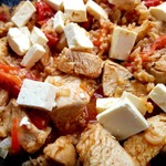 Нарезать квадратиками сыр фета, добавить в рагу.